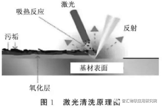 ¼¤¹âÇåÏ´ÊÇÀûÓü¤¹â¹âÊø¾ßÓдóµÄÄÜÁ¿Ãܶȡ¢Æ«Ïò¿É¿ØºÍ»ã¾ÛÄÜÁ¦Ç¿µÈÌØÐÔ£¬Ê¹ÎÛȾÎïÓë»ùÌåÖ®¼äµÄ½áÐÁ¦Êܵ½ÆÆ»µ»òÕßʹÎÛȾÎïÖ±½ÓÆø»¯µÈ·½Ê½½øÐÐÍÑÎÛ£¬½µµÍÎÛȾÎïÓë»ùÌåµÄ½áºÏÇ¿¶È£¬½ø¶øµ½´ïÇåÏ´¹¤¼þÍâòµÄ×÷Ó᣼¤¹âÇåÏ´ÔÀíͼÈçͼ£±Ëùʾ¡£µ±¹¤¼þÍâòÎÛȾÎïÎüÊÕ¼¤¹âµÄÄÜÁ¿ºó£¬Æä¿ìËÙÆø»¯»ò˲¼äÊÜÈÈÅòÕͺó¿Ë·þÎÛȾÎïÓë»ùÌåÍâò֮¼äµÄ×÷ÓÃÁ¦£¬ÓÉÓÚÊÜÈÈÄÜÁ¿Éý¸ß£¬ÎÛȾÎïÁ£×Ó½øÐÐÕñ¶¯ºó¶ø´Ó»ùÌåÍâòÍÑÂä¡£
